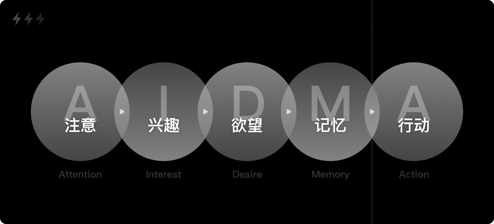 在上世纪漫长的时间里,营销者通过电视、报纸、杂志等媒介,发布产品信息,刺激用户发生购买行为,这段时间被称为传统大众媒体的时代。1898年,美国广告学家E-S-刘易斯提出了一个极具代表性的消费心理模式,AIDMA模型,勾勒出了消费者购买商品前的心理过程。消费者先是注意到商品及其广告,并对商品发生兴趣,从而产生需求欲望,最后是记忆以及采取购买行动。由于购买需在线下,甚至是指定地点,因此从记忆到行动的转化路径不具有连续性。
