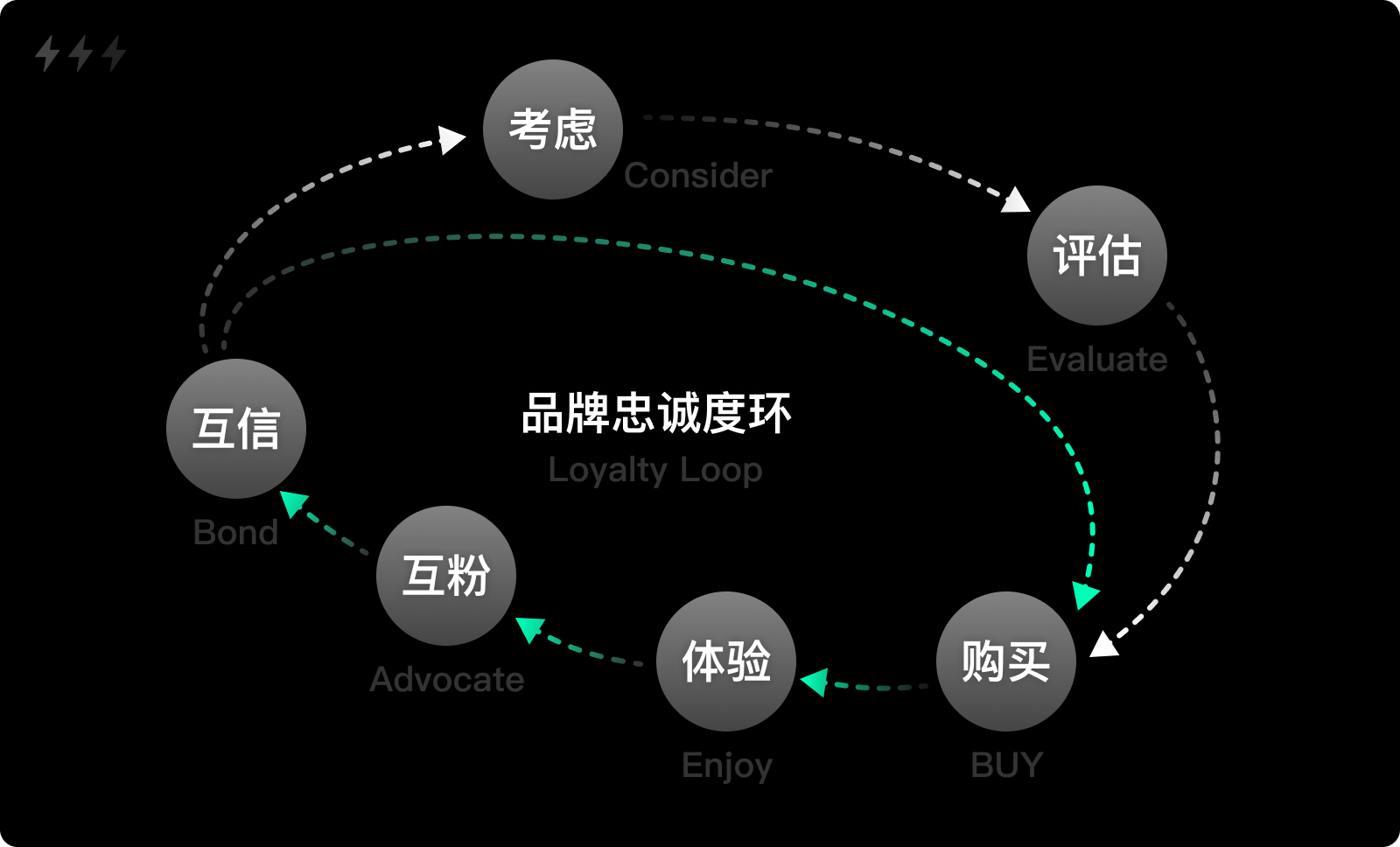 忠诚路径:对于已经购买过的用户,他们在产生需求后,通过搜索或其他方式快速访问官网,在已有信任感的驱使下,大概率会直接采取行动,跳过注意、兴趣和决策阶段。